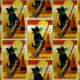 Vintage Halloween greeting card illustration showing a black cat, witches broom and hat with text "Friendly Fairy Witch or Fay, fullfill the wish you wish today."