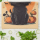 Halloween Black Cat Full Moon Tea Towel