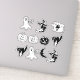 Halloween black cat, flying witch, ghost, boo, jack o lantern, pumpkin, half moon, spooky funny black and white stickers.