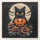 Halloween Black Cat, Moon & Pumpkin Glass Coaster