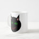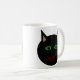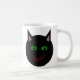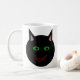 This stylish mug features a black cat with pointed ears, bright green eyes and a sly red grin. This creepy kitty is perfect for Halloween or for cat lovers.