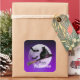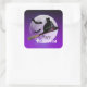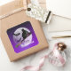 Halloween Black Cat on Broom Full Moon Square Sticker