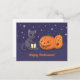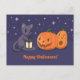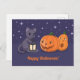 Halloween Black Cat Pumpkins Lantern Purple Postcard