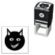 This awesome self inking stamp features a black cat with pointed ears, bright green eyes and a sly red grin. This creepy kitty is perfect for Halloween or for cat lovers.