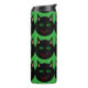 This awesome thermal tumbler features a black cat with pointed ears, bright green eyes and a sly red grin. This creepy kitty is perfect for Halloween or for cat lovers.
