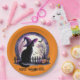 A Cute Fall - Halloween Design with a black cat, pumpkins and bats.