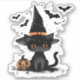 Halloween Black Cat Witch and Bats Sticker
