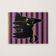 Halloween Black Cat Witch Hat Stripes Jigsaw Puzzle