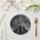 Halloween black cat silhouette with glowing eyes on full moon background for party