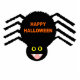 This sculpture features a spooky black spider with eight hairy legs, yellow eyes with big black pupils and its mouth open showing its fangs. There is orange text that reads “Happy Halloween”.