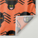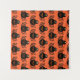 This awesome tapestry features a spooky black spider with eight hairy legs, yellow eyes with big black pupils and its mouth open showing its fangs. There is orange text that reads “Happy Halloween” and a matching orange background.
