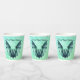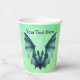 These paper cups are a mix of blues and green with a Halloween flying bat with furry body with a bluish green colour. Customise your text with the templates on the front and back.