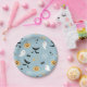 Charming Halloween party paper plates featuring cute ghosts, pumpkins, spiderwebs and bats against a light blue background. Great for children's Halloween costume parties, birthdays or baby shower parties.