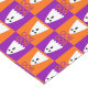 This awesome table runner features a cute little white ghost with black eyes and a black mouth that is wide open. Each ghost sits on either an orange coloured square or a purple coloured square and there is either orange or purple text in each square that says Boo! The result is a pattern of squares and ghosts.