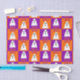 This awesome tissue paper features a cute little white ghost with black eyes and a black mouth that is wide open. Each ghost sits on either an orange coloured square or a purple coloured square and there is either orange or purple text in each square that says Boo! The result is a pattern of squares and ghosts.
