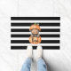 Halloween "Boo" Pumpkin Doormat. This is cute Halloween design in modern black- white stripes.