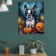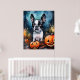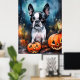 Halloween Boston Terrier With Pumpkins Scary Poster