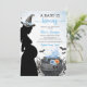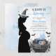 The invitation features a witch, cauldron, and spider webs. This design is perfect for a Halloween-themed boy baby shower.