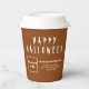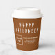 Happy Halloween! One of the holidays of the year to advertise your business or to promote your brand name to customers. By the way, are you looking for paper cup with Halloween greeting for your cafe business? Please see this brown paper cup. You might like it. Font colours are light brown and white. Customise it and use it like a marketing material to advertise your business and to greet your customers this Halloween. To customise this paper cup, upload your business logo, type your business or company name, address and phone number. Please check the appearance after uploading logo and typing texts. If the appearance is pleasing to you, you can place your order now. If you need to resize and move the logo and texts to fit on this paper cup, please change in the design tool. You can also make other changes according to your preference in the design tool such as changing the paper cup colour, font colour and font style. Paper cup with your business name to build brand awareness while your customers enjoy sipping the tasty aromatic coffee that you served to them.