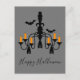 Gothic design of a black chandelier with candles and bats. Stylish gothic halloween design with a black and orange theme. Happy Halloween