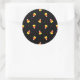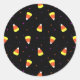 Whimsical, Halloween stickers with a sweet pattern of candy corn and tiny, colourful stars on a black background. Fun for any candy corn lover!