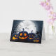 Greeting card shown with a festive Halloween scary pumpkins print.
