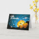Greeting card is shown with a festive Halloween scary pumpkins print.