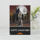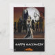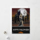 A 8" x 11" Halloween greeting card with a black and orange spooky background of various spine-chilling characters of the ghostly world including the nun, zombie, witch, a scary bride etc.