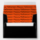 Card envelope shown in black and orange with Halloween text on inside.