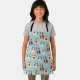 Cute halloween theme kid's apron featuring illustration of cats and dogs in costumes.