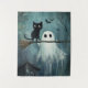 Halloween Cat and Ghost Flying on Broom Tapestry
