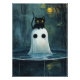 Halloween Cat and Ghost in Pool Poster