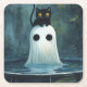 Halloween Cat and Ghost in Pool Square Paper Coaster