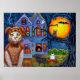 Halloween Cat Dog Costume Haunted Victorian House Poster