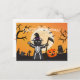 Funny and spooky cat grim reaper with a cat-o'-lantern and a cat ghost in the cemetery on Halloween night. A great Halloween gift for cat lovers.
