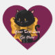 Personalise these black cat heart-shaped stickers with your own name or text.