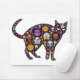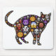 COLORFUL HALLOWEEN CAT WITH PUMPKINS, GHOSTS, DEVILS AND SKULL HEADS.