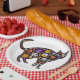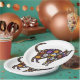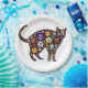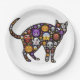 COLORFUL HALLOWEEN CAT WITH PUMPKINS, GHOSTS, DEVILS AND SKULL HEADS.