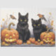 Unleash your creativity this season with enchanting decoupage designs. Join our whimsical world, where two black cats sit among pumpkins. Elevate your crafting game now!