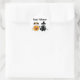 A black and white cat dressed up as a pumpkin and a grey tabby dressed up as a witch with her own cat on this adorable sticker. The text says, "Happy Halloween", but can be personalised to fit your needs.