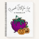 This custom notebook features a colourful Halloween theme. An image of a bubbling cauldron is placed in the centre, with two jack o' lanterns in front of it, accented with a creepy spiderweb and faux glitter. One of the pumpkins has a scary face and the other looks happy. The phrase "Brewed Just for You" is printed across the top of the notebook, followed by a sample name which you can personalise to include your own custom name or text. It's perfect for keeping recipes and notes of your homemade or handmade treats.