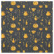 A witch themed Cauldron and potions patterned fabric. Design features potions and cauldrons in orange on a black background. A fun design for Halloween themed home decor, crafting and sewing or quilting projects.