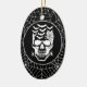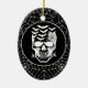 Halloween party ceramic ornament is shown with a spooky skull print on a spiderweb black colour background.