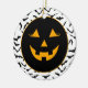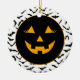 Halloween party ceramic ornament is shown with a pumpkin face.