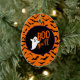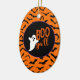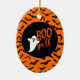 Halloween party ceramic ornament is shown with a cute ghost boo print.