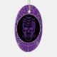 Halloween party ceramic ornament is shown with a spooky skull print on a spiderweb purple colour background.