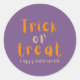 Add a festive touch to your Halloween with our 'Halloween Classic Trick or Treat' round stickers. Perfect for sealing party favours, decorating invitations. These stickers are a simple yet fun way to enhance your Halloween celebrations!