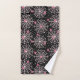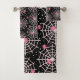 Towel set with a cute seamless pattern with white cobwebs and pink spiders.