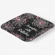 Paper plates with a cute seamless pattern with white cobwebs and pink spiders.