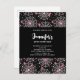 Birthday invitation postcard with a cute seamless pattern with white cobwebs and pink spiders.